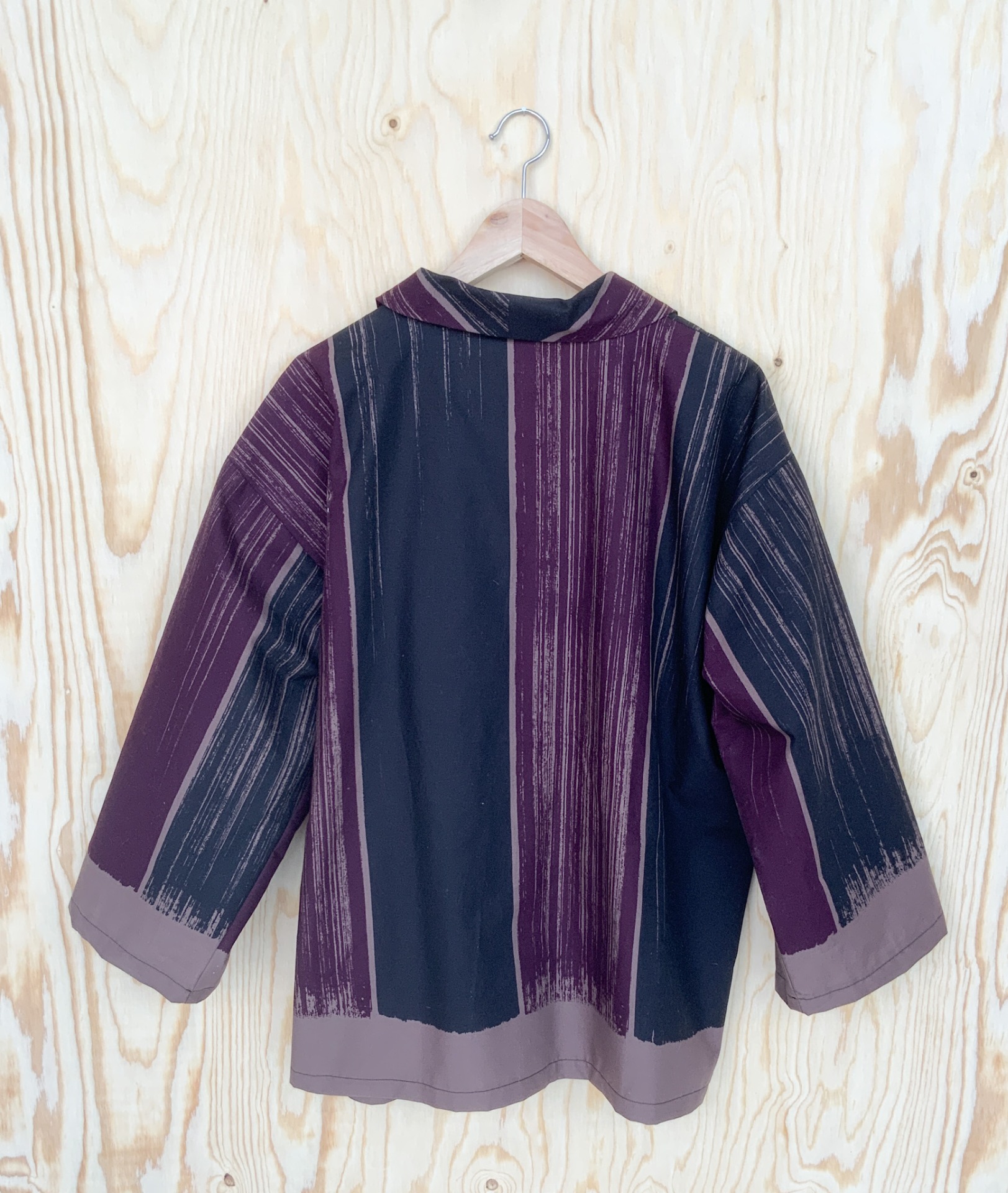 Väljä Raita kimonotakki on valmistettu puuvilla retrokankaasta. Tunikassa on huivikaulus sekä vyökiinnitys sivulla, jolla on helppo säädellä istuvuutta.